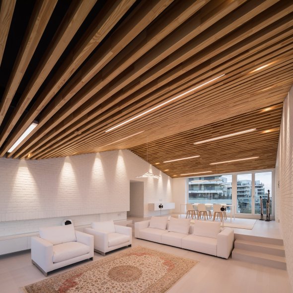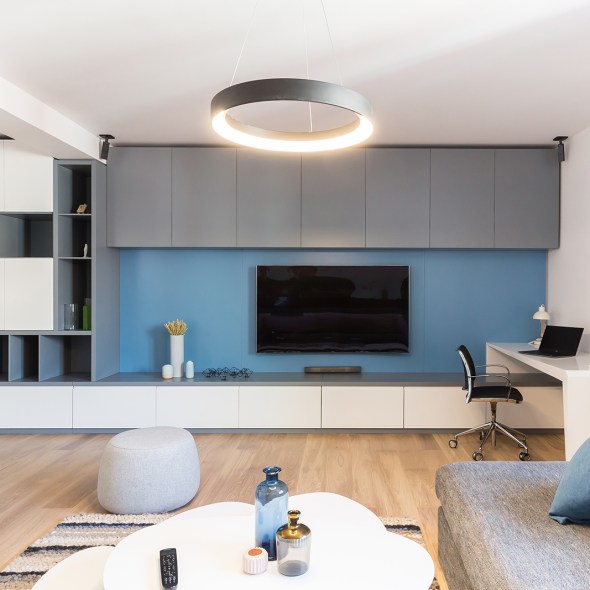Amenajarea interioara in contrast alb-albastru a unei case moderne