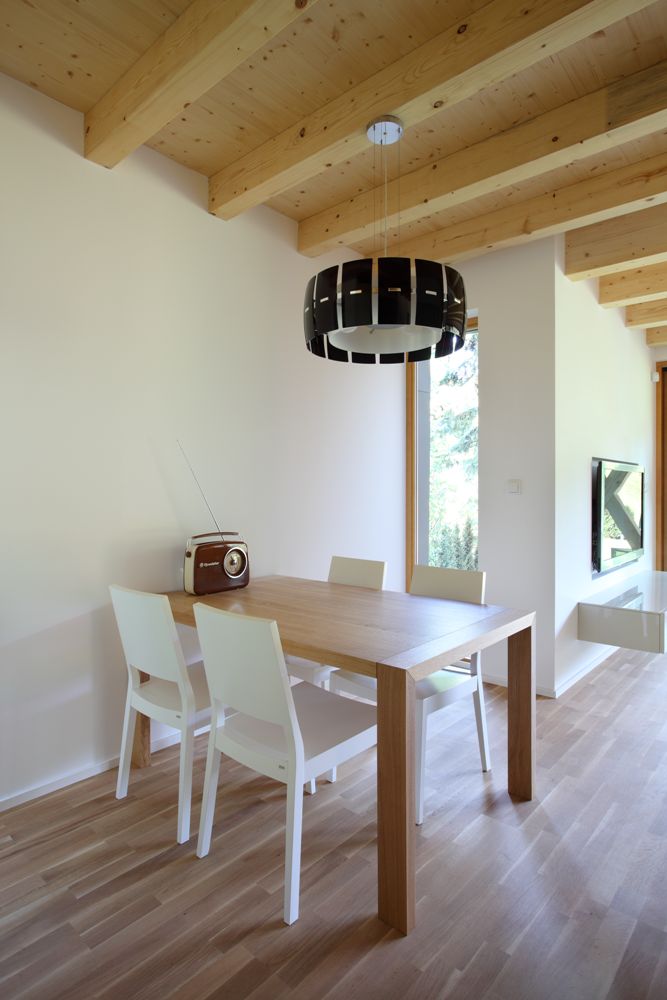 La interior s-au folosit materiale si culori simple,încât să satisfacă strictul necesar pentru o casă de weekend. Aproape toată casa (cu excepţia semineului) a fost construită cu firme si materiale locale.