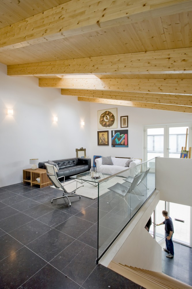 Etajul găzduieşte livingul,locul de servit masa şi bucătăria ,la parter aflandu-se dormitoarele,băi.