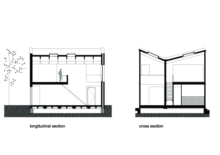 Scurgerea e mascată in peretele de spriijin al scării ce leaga nivelele.