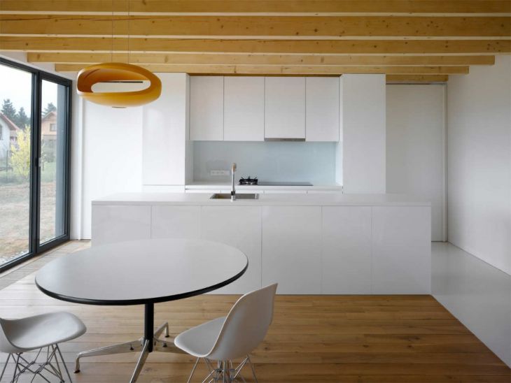 Casa este din lemn, cu structura de bază portanta dezvoltată în funcţie de interiorul dorit.Această abordare a permis utilizarea maximă a spaţiului chiar şi în încăperile relativ mici. La bază are un aspect transparent,planimetrie aerisită ,cu suficiente spaţii de depozitare adăugate la conceptul său limitat şi economic.