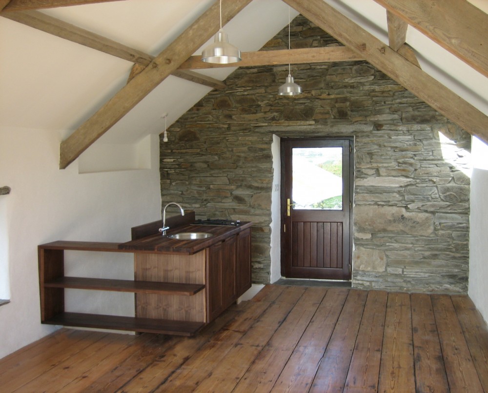 Dorinţa clientului a fost de a transforma un hambar vechi din piatră într-un studio de pictură şi cabană de vacanţă.S-a dorit să se păstreze caracterul rustic al cabanei dar în acelaşi timp să ofere şi deschideri mari,multă lumina pentru studio-ul de pictură.