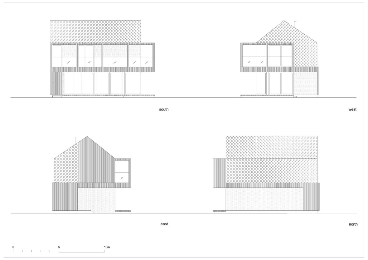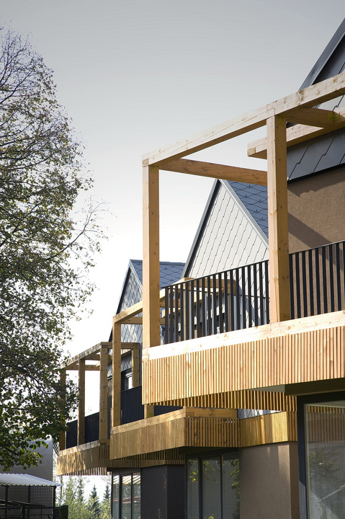 Materialele folosite sunt lemnul atât la interior cât şi la exterior,apar şi zone tencuite, plăci fibrociment,sticlă.