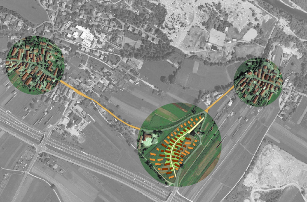 Proiectul face parte dintr-un studiu urbanistic pentru zonele suburbane din afară inelului de autostradă al Ljubljanei.Ideea principală propusă este condensarea în mici grupări de sate legate între ele a aspectului tradiţional din mediul rural şi amplasarea longitudinală a caselor de-a lungul drumului cu o zonă verde în jurul acestora.