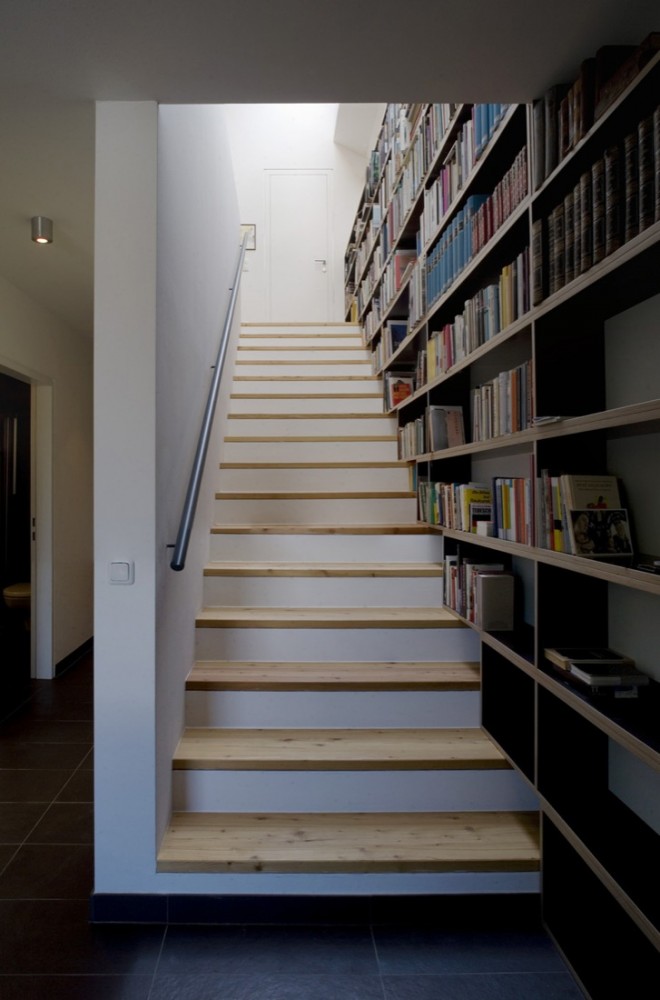 Casa începe de la o cotă superioară,parterul fiind format dintr-o cameră de studiu cu baie,un spaţiu pentru depozitare şi scara ce ne duce spre etaj unde avem desfăşurată zona de zi cu bucătărie,loc de luat masa,living şi dormitorul matrimonial .