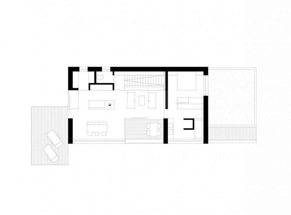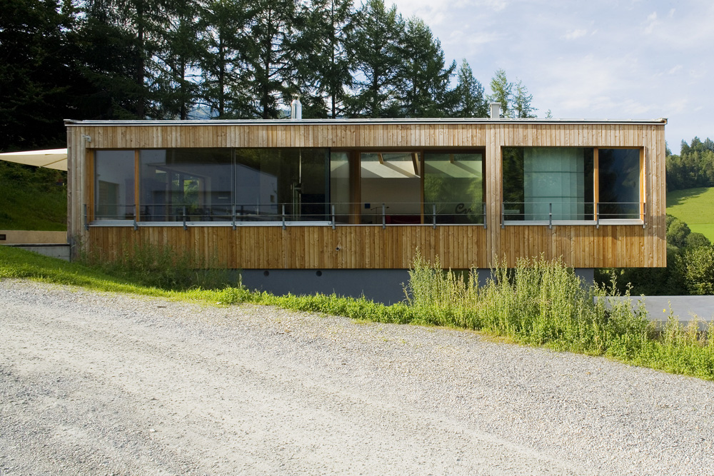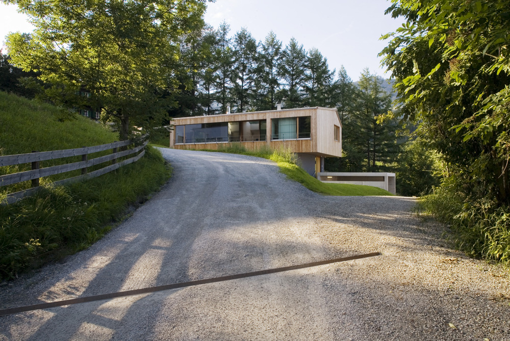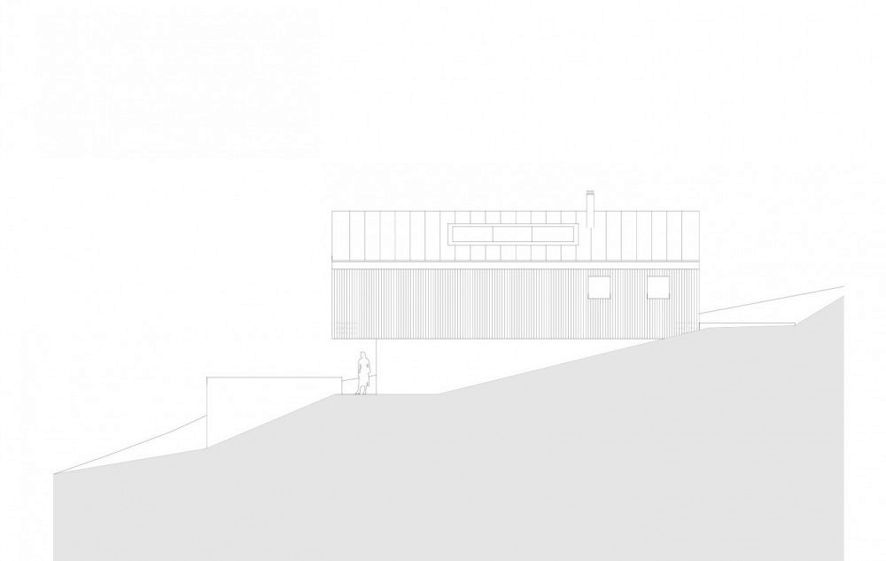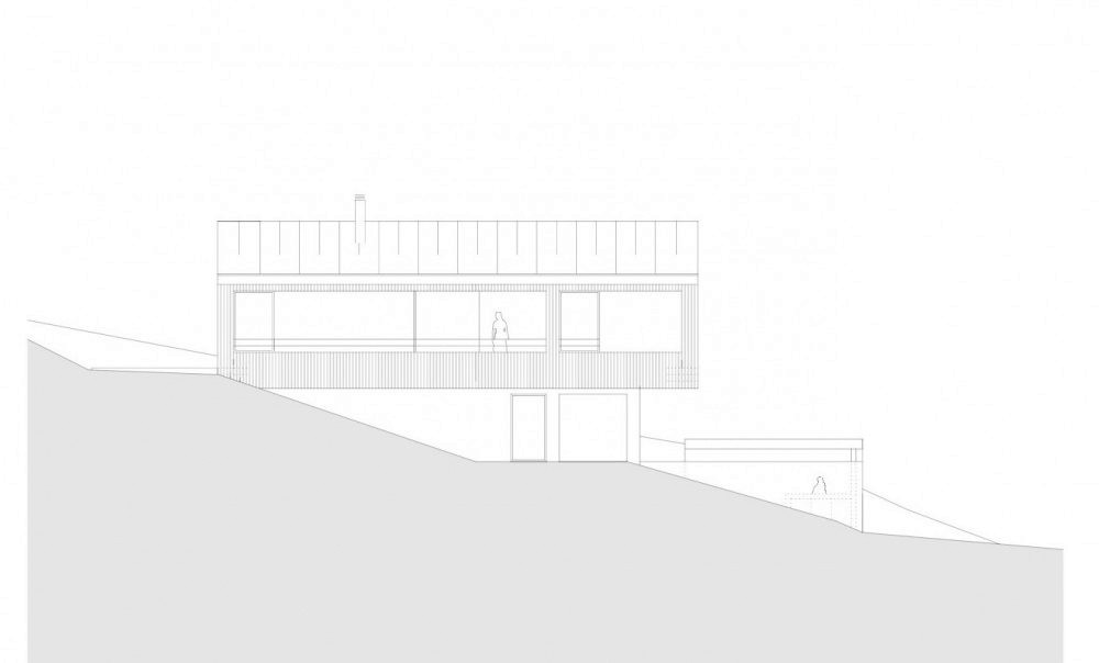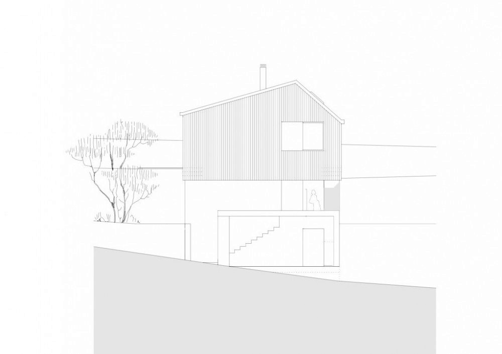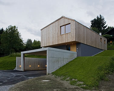 Corelarea faţadei şi a acoperişului, precum şi aplicarea materialelor formează o clădire discretă,simplă şi modernă.Baza de beton este o construcţie solidă, adăpostind un garaj deschis şi spaţii de depozitare.