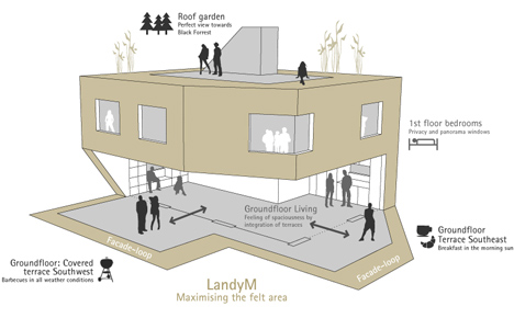Cele două etaje ale casei LandyM are patru dormitoare şi două băi la etaj, şi alte două dormitoare în subsol, luminate adecvat.Etajul superior este flexibil ca şi compartimentare putând să aibă 2 băi şi până la 4 dormitoare, care pot fi aranjate individual.