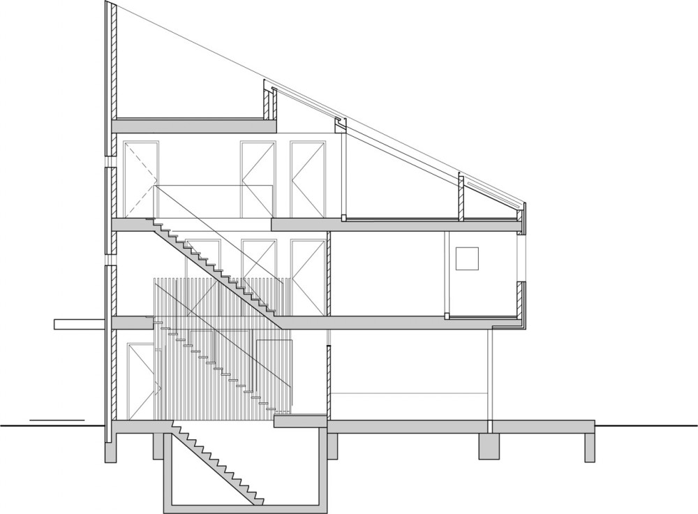 Din casă ,cartierul rezidenţial din jur este greu de perceput, din cauza orientării sale faţă de natură. Prin urmare, există un puternic sentiment de intimitate şi deschidere spre peisajul din jur.