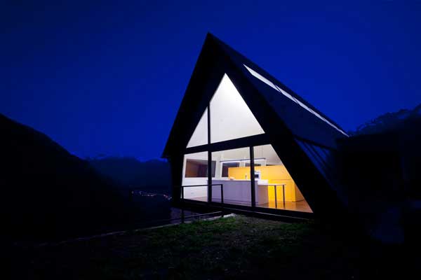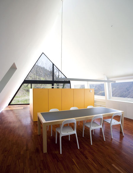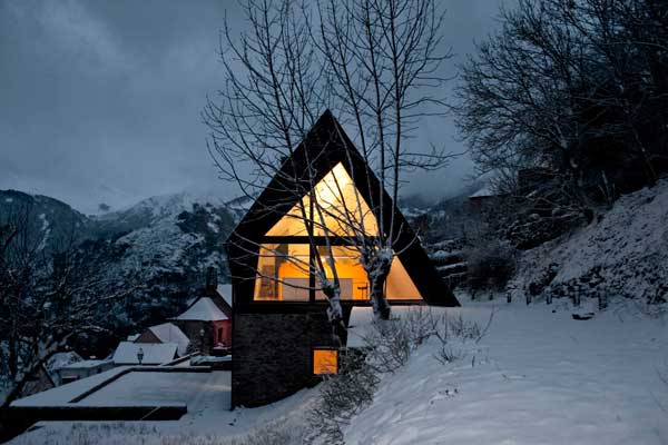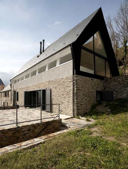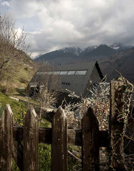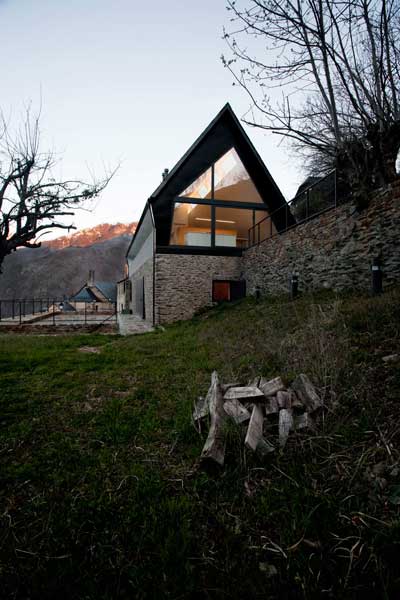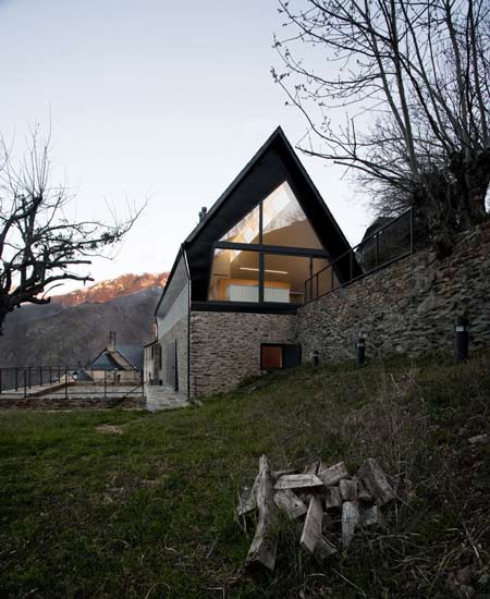 Arhitectii Cadaval & Sola-Morales au adăugat acest acoperiş puternic inclinat peste o veche construcţie din piatră uscată în Pirineii spanioli pentru a forma două case.