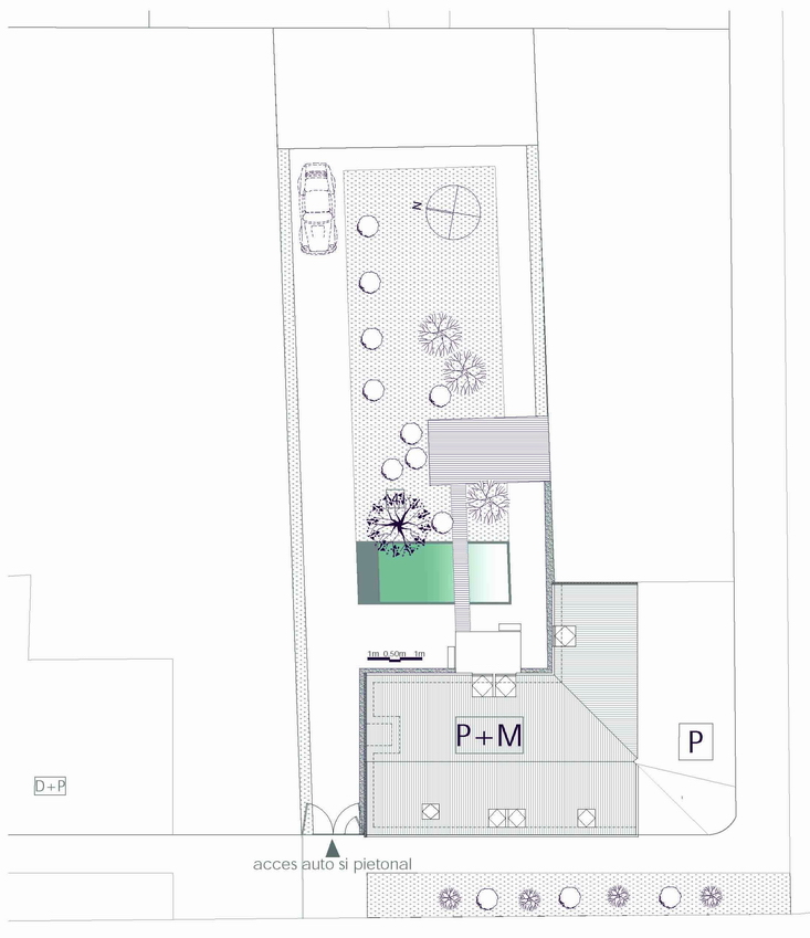 Plecand de la optiunea beneficiarului, de a nu ridica costurile, interventiile realizate asupra casei existente nu au fost de factura majora. Acestea au avut in vedere urmarirea unui volum cat mai simplu pentru a nu modifica atmosfera spatiului gradina- casa, precum nici cea a spatiului casa- strada.