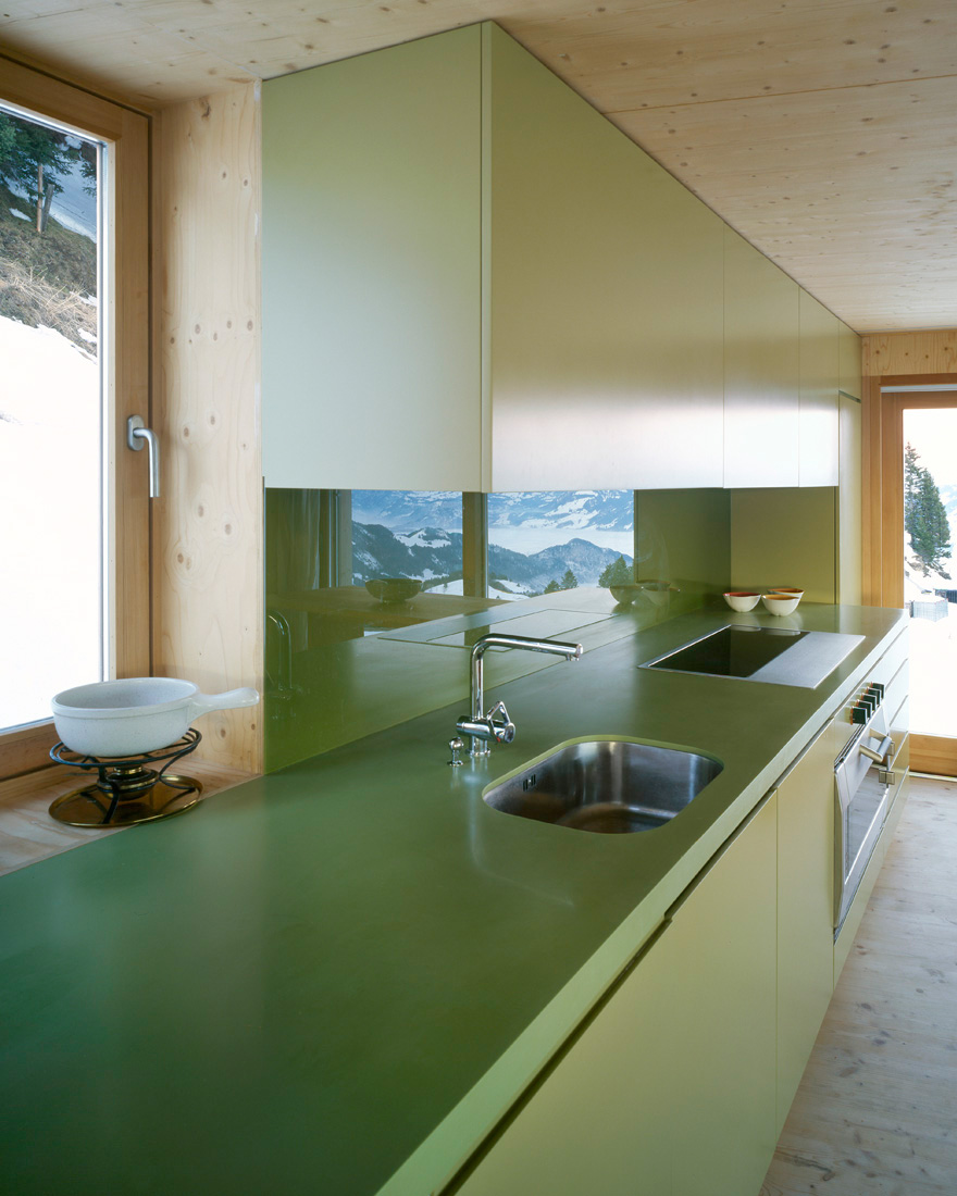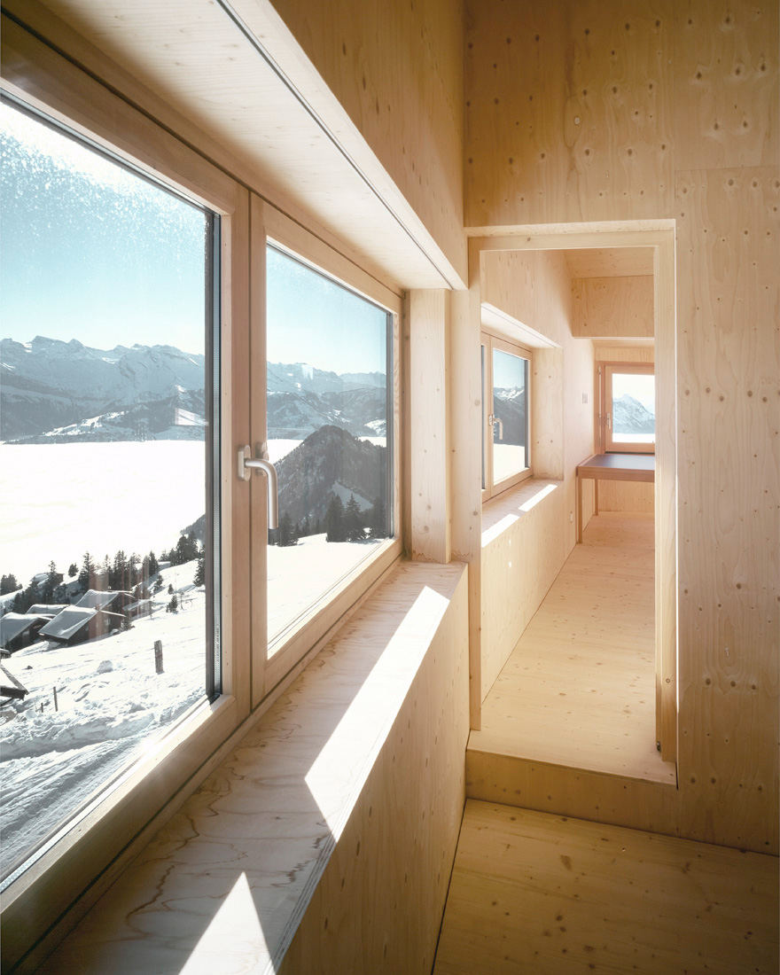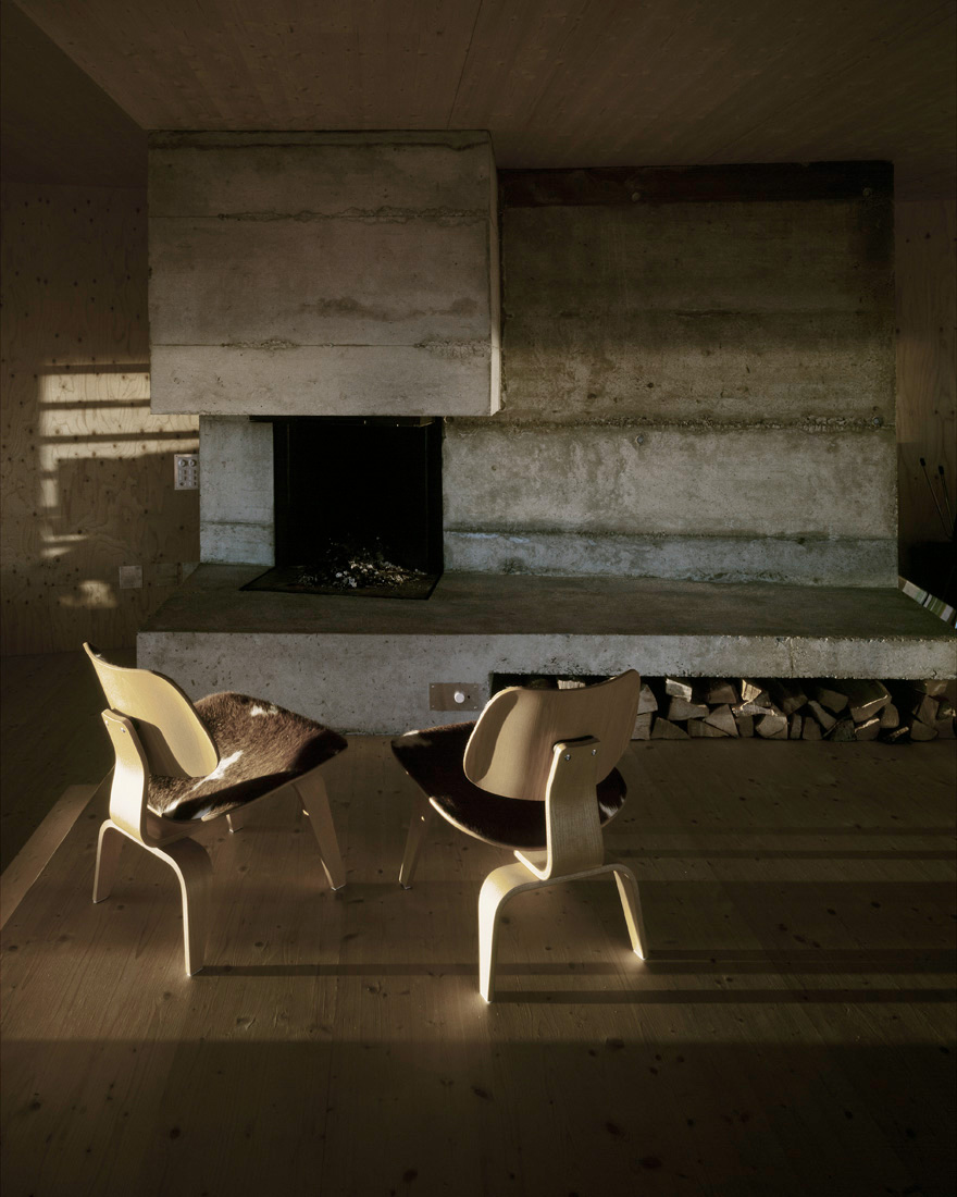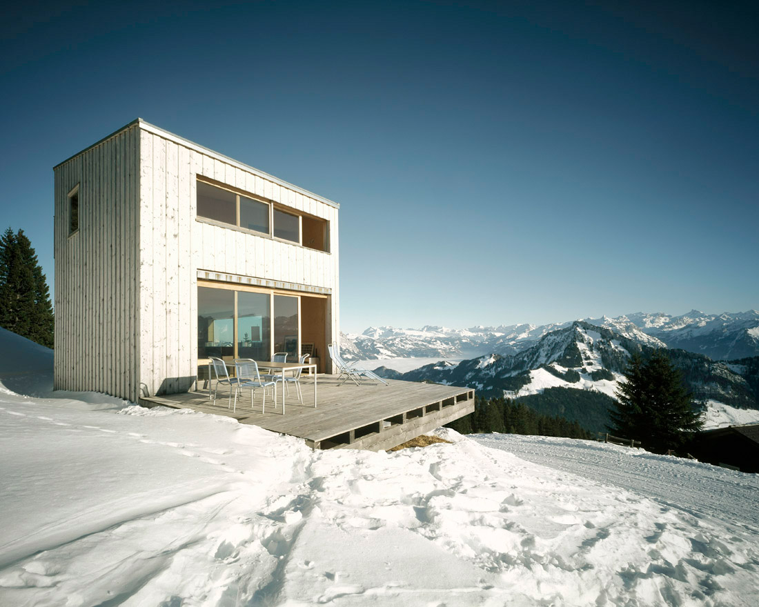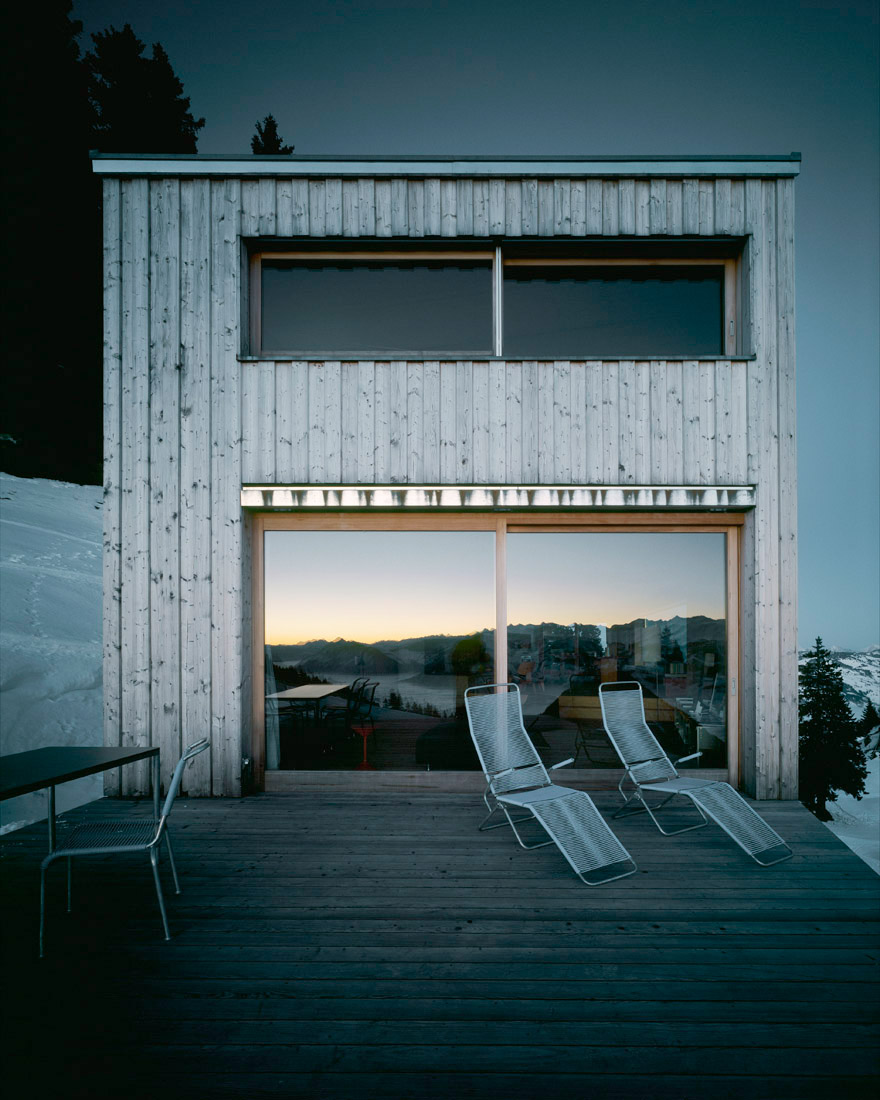 Cladirea a fost pozitionata la marginea proprietatii,astfel incat distanta pana la casele vecine este cat se poate de mare, lasand si posibilitatea de a consstrui pe teren inca o cladire. Peste pivnita din beton ancorata bine in terenul in panta,se ridica un volum din lemn asemenea unei nave.