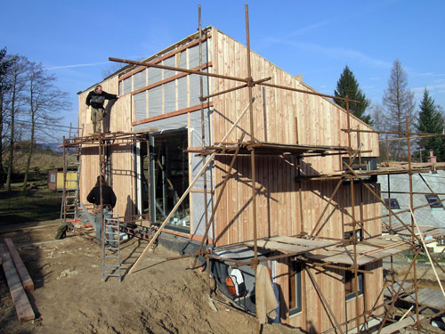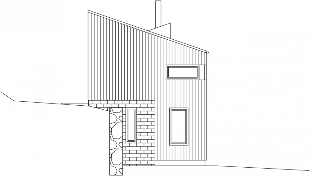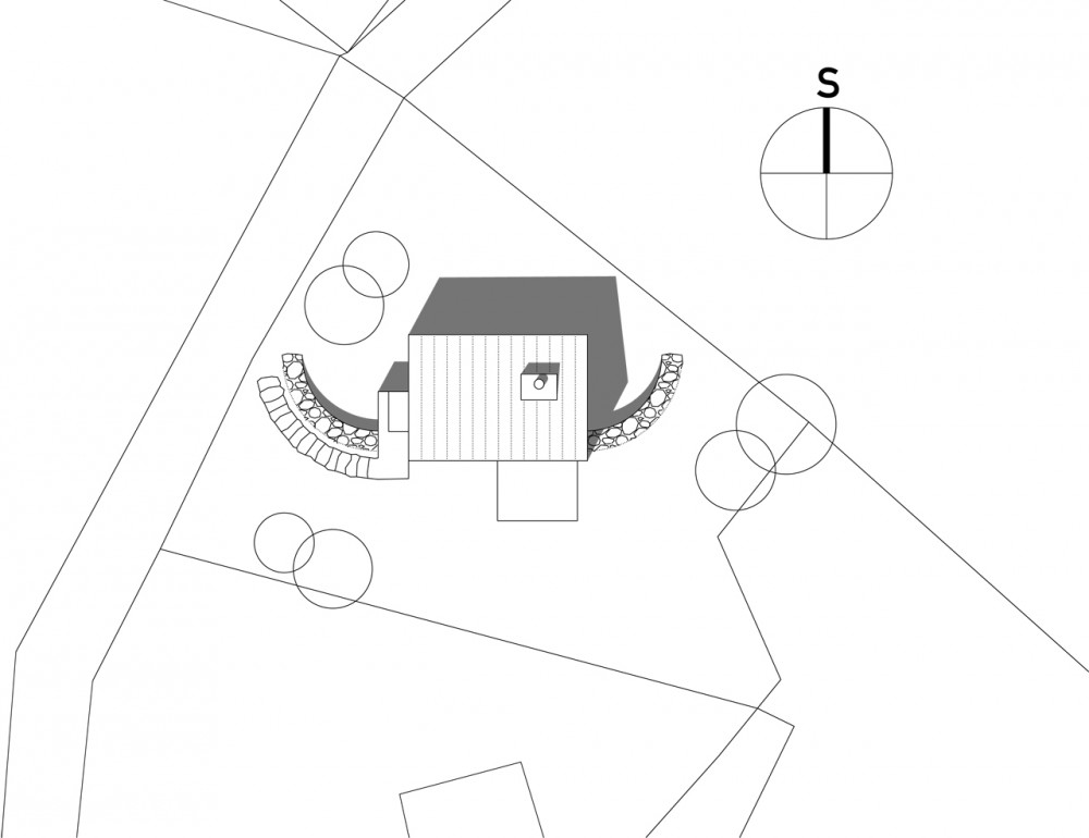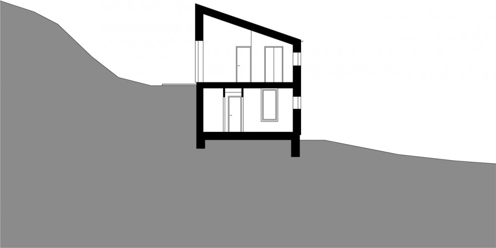 Forma terenului in panta si orientarea nefavorabila spre nord au fost decisive pentru volumul casei, plasarea ei, amenajarea sitului.Astfel s-a ajuns la un volum ce „musca” din panta dealului, accesul facandu-se la primul etaj ce reprezinta zona de zi si din care se coboara in zona de noapte.