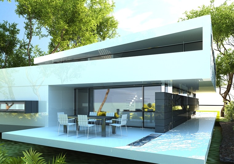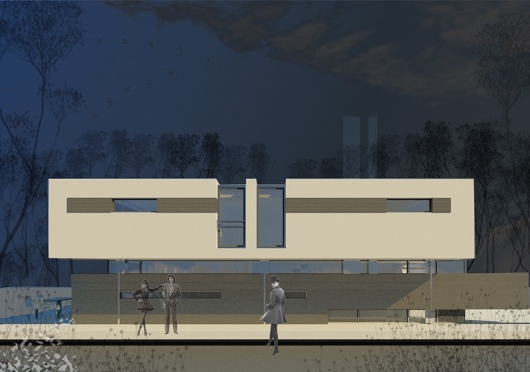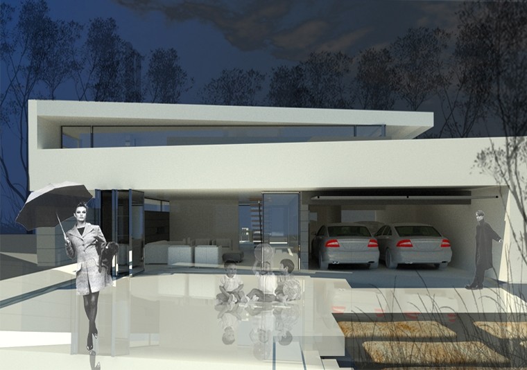Conceputa ca un obiect de design ce pare ca sfideaza legile gravitationale, casa se inchide si deschide spre spatiul exterior in ritmul organic al fluxului functional al locuintei. Astfel zona de zi situata la parter se desface catre comuniune cu spatiul gradinii, in timp ce zona de noapte este adapostita intr-un gest arhitectural de efect prin consola care se metamorfozeaza in “palma” protectoare la etaj. Locuinta devine astfel mai mult decat scena functiunilor ei specifice, transformandu-se intr-un partener inanimat al unui dialog continuu cu locuitorii ei zi de zi.