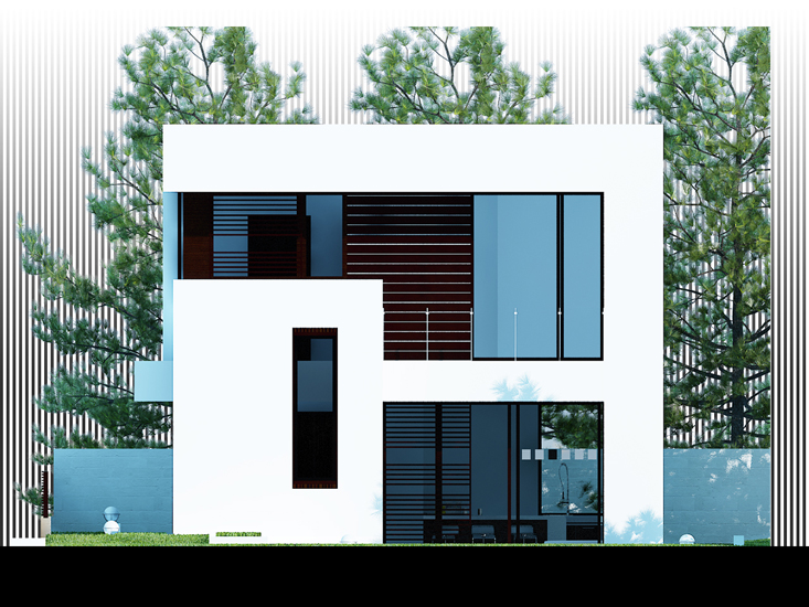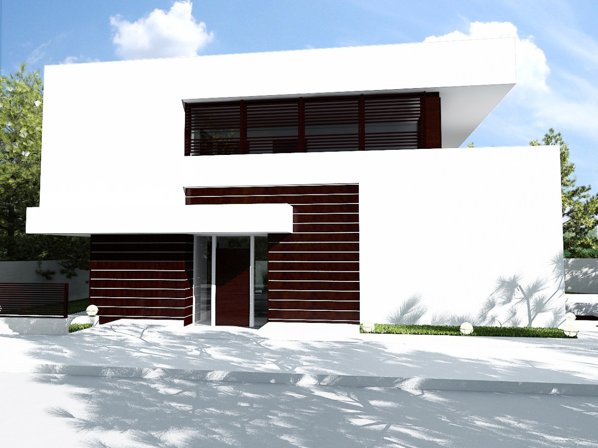 Proiectul de casa propus este caracterizat prin intersectie clara de volume, ferestre care separa suprafete de plin, accente orizontale, culori contrastante si texturi naturale, liniile simple ale locuintei, unghiul drept exprimand caracterul modern al constructiei.