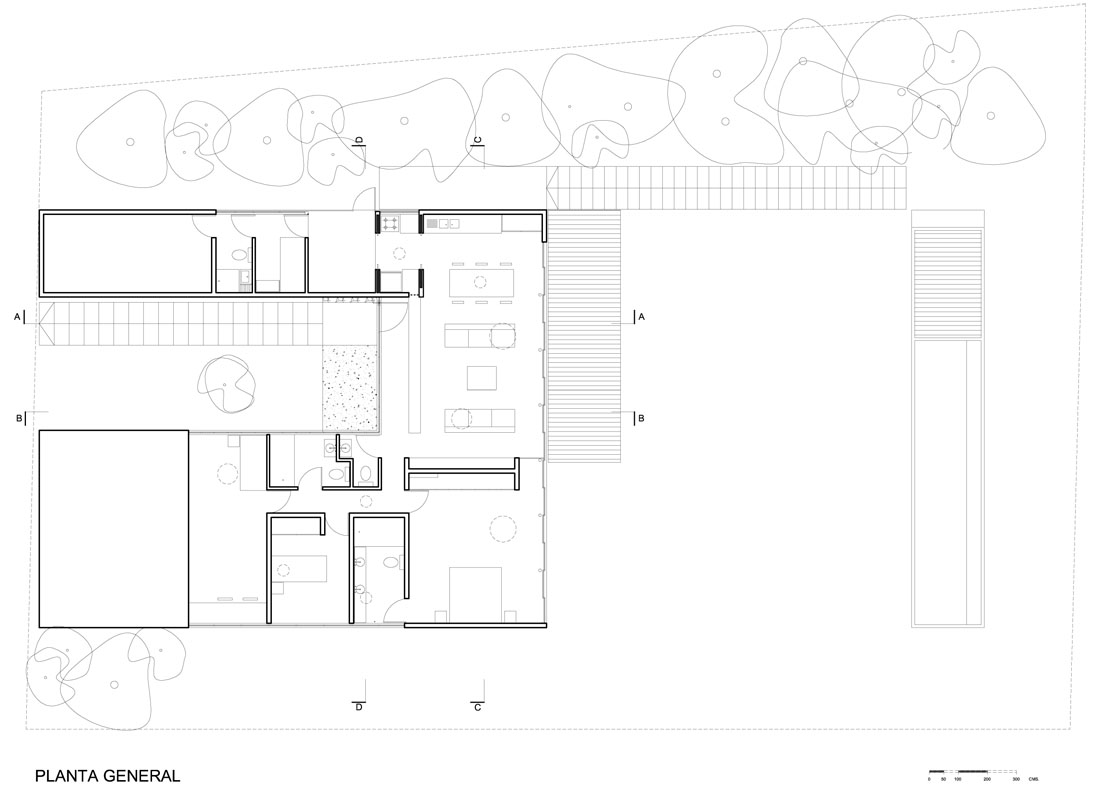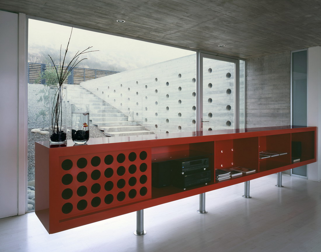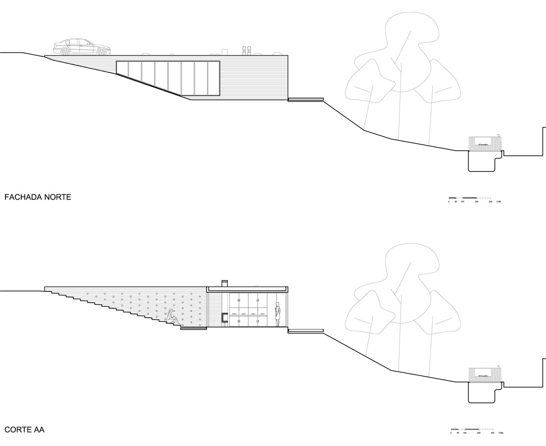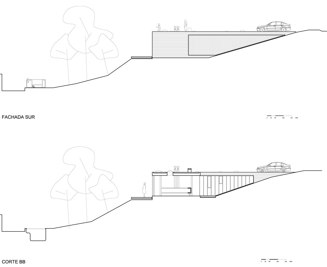 Propunerea arhitectului a fost o casa fara fatada, o clădire care urmează să fie dezvoltata de la nivelul străzii in jos, in felul acesta pastrandu-se calitatile sitului ales -belvederea spre valea Chicureo.