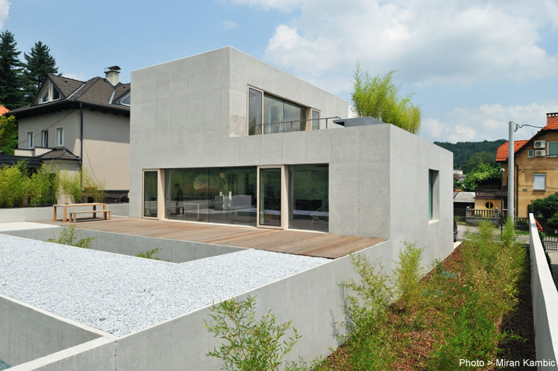 Casa prezentata este situata intr-un cartier rezidential din apropierea orasului Ljubljana.Conceptul a fost definit de stilul de viata specific al clientului si de nevoile sale.