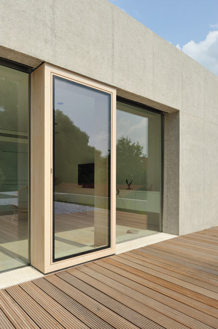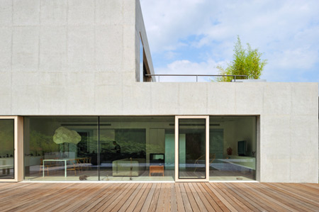 Casa este construita din beton care a permis o deschidere vasta a spatiilor. Betonul a fost turnat la fata locului, a fost slefuit si lustruit, dezvăluind un caracter sedimental al materialului.