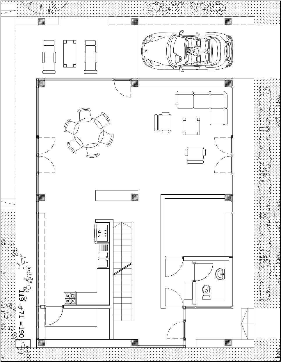 Casa este gandita pentru o persoana tanara, care doreste sa aiba propriul camin, separat si independent. Astfel, dorinta a fost de a avea un imobil functional, care sa raspunda nevoilor pentru urmatoarea decada. Organizat cit se poate de functional, casa raspunde foarte bine si conditiilor de amplasare in teren, dar si cu o abordare contemporana din punct de vedere estetic. Simpla si eleganta, dar in acelasi timp tinereasca si „in trend”.