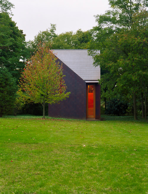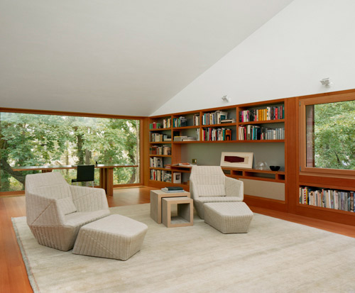 Proiectata pentru a gazdui cele mai de pret lucruri ale unui istoric, cartile sale, spatiul acestei case mici de 80 de metri patrati este locul perfect pentru a studia, a citi, a scrie si pentru relaxare, in mijlocul padurii din Long Island, New York. Casa cuprinde, pe langa spatiile necesare, un birou si o biblioteca.