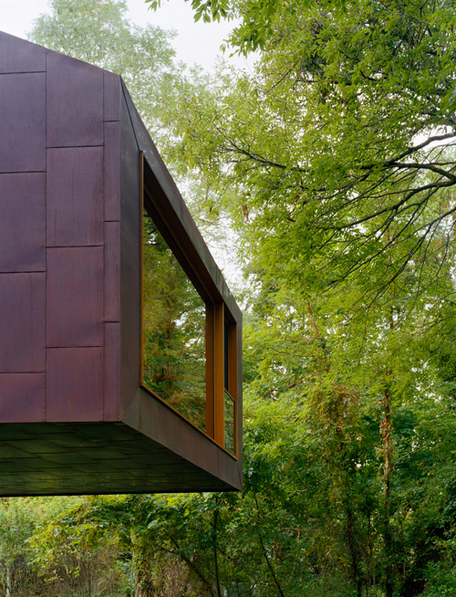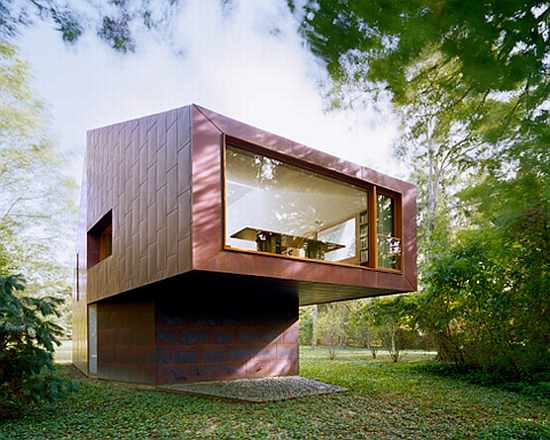 Arhitectul proiectului, Andrew Berman, spune despre casa ca “ a fost conceputa ca o prezenta transformabila in mijlocul peisajului”. Fatadele neobisnuite, finisate cu panouri de cupru, reflecta culorile naturii in continua schimbare.