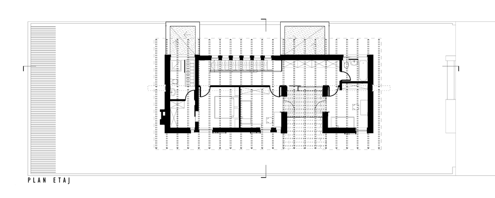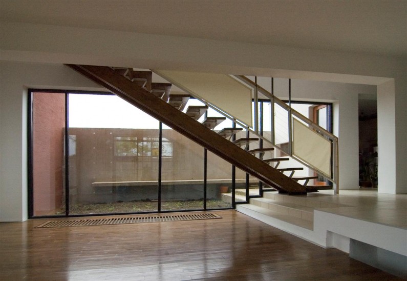Raportul sus-jos este exprimat dublu, printr-o scara care celebreaza spatiul principal si printr-o alta scara ascunsa, „mai mult decît privata” – in baia matrimoniala.