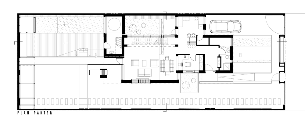 Ca orice casa care se respecta nu si-a neglijat nici relatia cu solul, acomodand curti/gradina la nivel macro (curtea mare), mediu (curtea de vara spre nord – in relatie cu bucataria) si micro (gradina din fata biroului ce articuleaza si intrarea)