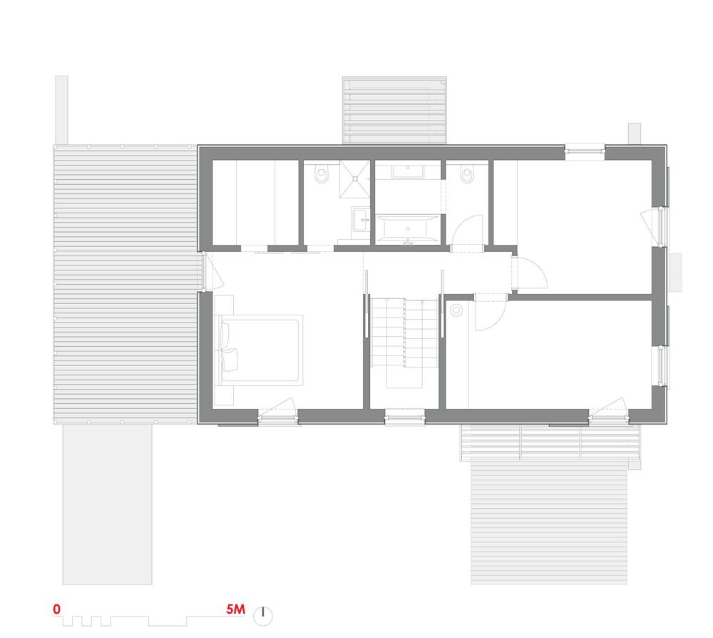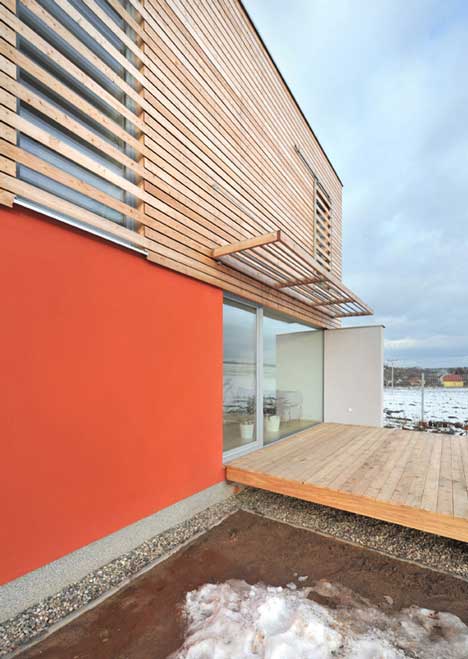Terenul aflat la marginea orasului Praga, protejat de o padure pe latura nordica si cu o deschidere generoasa spre sud, este ideal pentru o casa eficienta energetic. Proiectul a fost conceput pentru o familie de 3 persoane ce si-au dorit o casa din lemn, aproape de standardul de casa pasiva, folosind materiale naturale, dar mai ales incearca sa fie cat mai simpla, rationala,economica si sa foloseasca spatiul interior la maxim fara pierderi. Aceste aspecte sunt foarte importante pentru o arhitectura durabila.