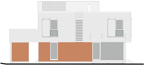 Casa iese in evindenta prin cele doua volume ce o compun : etajul placat cu lemn, iar parterul lasat cu tencuiala simpla de culoare portocalie.Prin orientarea pe teren casa creeaza o bariera naturala intre drumul din nord si gradina spatioasa de pe partea sudica.