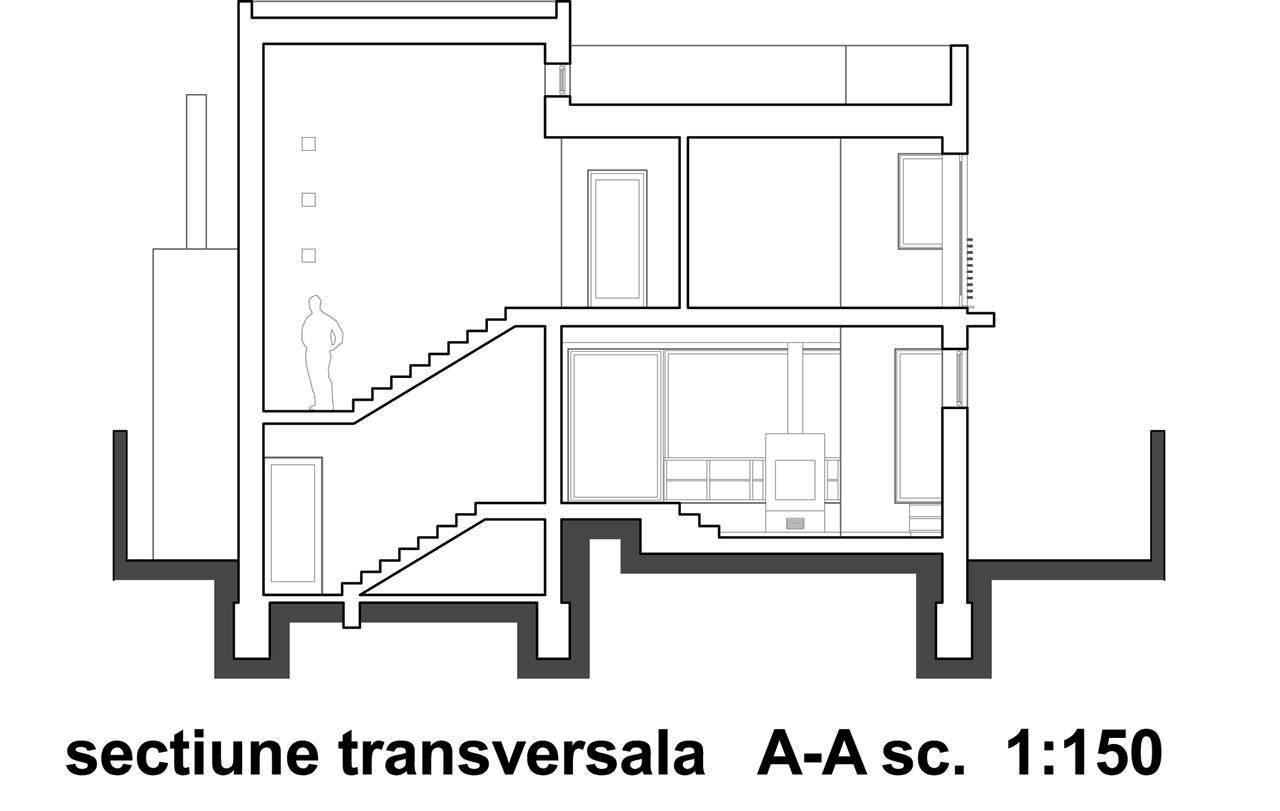 In conditiile mutarii de la un apartament obisnuit la casa, aceasta trebuia sa aibe un confort sporit, insa totusi o suprafata retinuta. Atenti la costuri si implicit la suprafata construita, am renuntat la spatiul conventional inchis, alocat autovehiculelor, modeland astfel „cutia” incat sa nu renuntam la protejarea accesului principal (si) de la masina in casa. Incercand sa tinem suprafetele sub control, am creat spatii deschise, fluide, in care zonele de circulatie si cele deservite se intrepatrund.