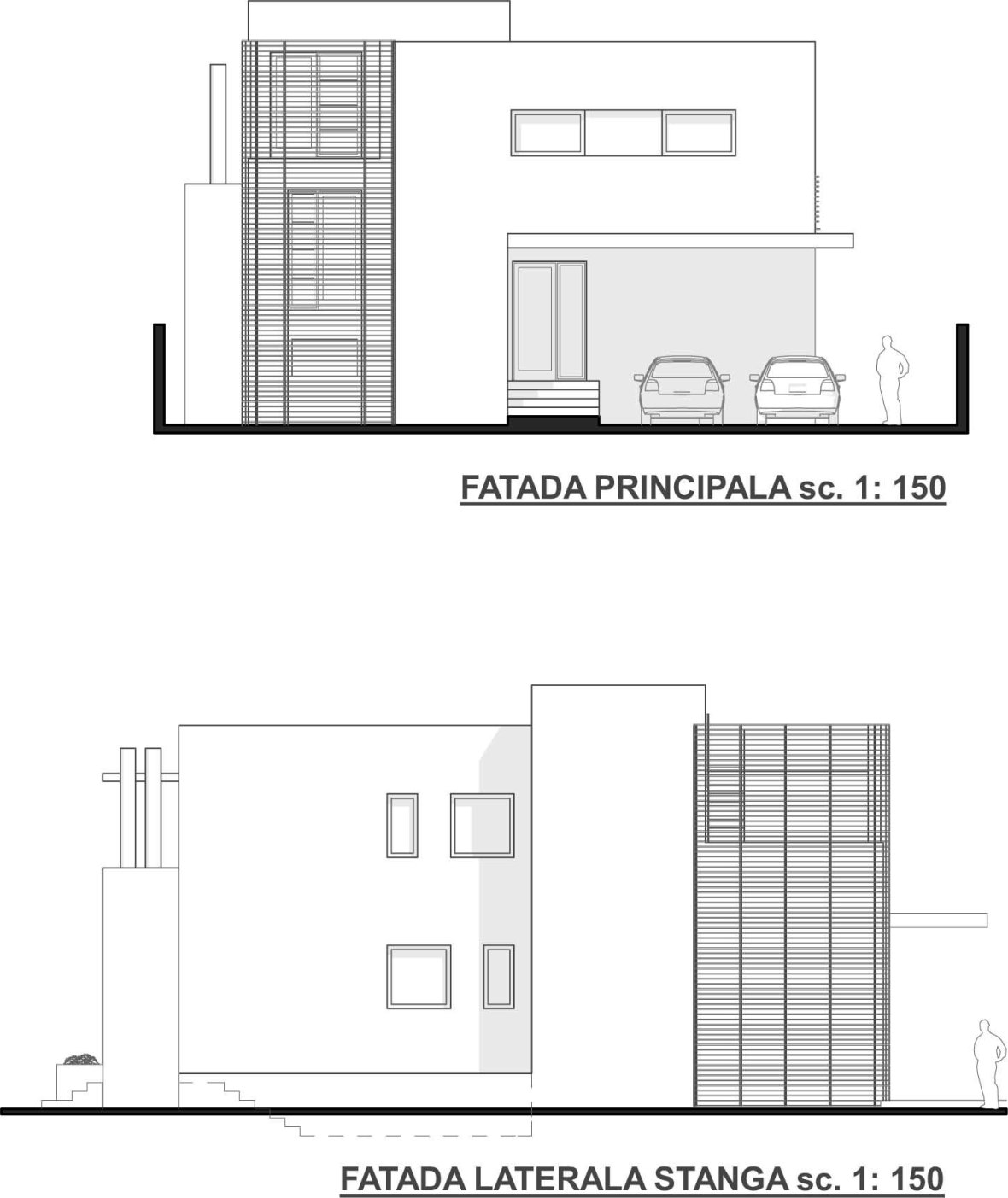 Odata cu rezolvarea accesului protejat in casa am creat identitatea casei prin acest element de tip consola de la nivelul superior – volum decupat la nivelul parterului sau al terasei intermediare, ce se regaseste interpretat si la nivelul celorlalte fatade.