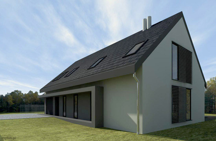 Cladirea este pentru o familie cu doi copii si prezinta o forma clasica compacta, acoperita in doua ape cu accente clare de divizare pe orizontala, astfel volumul compact primar este adus la o scara umana.