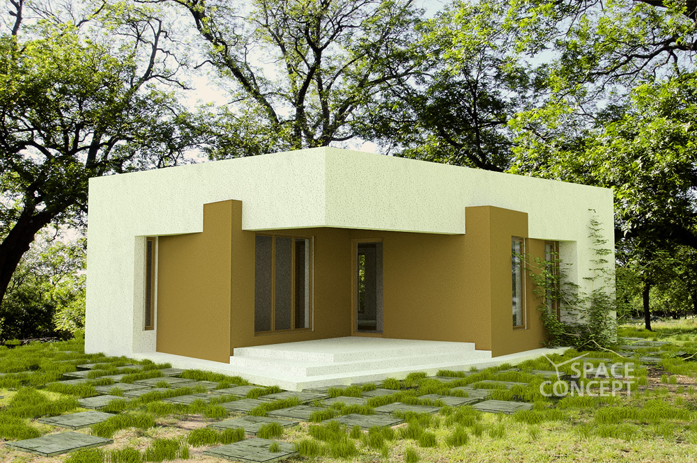 S-a dorit realizarea unei cladiri mici, cu regim inaltime parter, cu suprafata de 85 metri patrati in conditiile obtinerii functionalitatii unui apartament de 3 camere, a unei imagini moderne si a unui cost redus de executie.