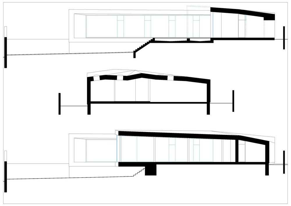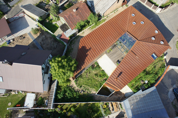 Cladirea are in plan forma literei U , se inchide spre vecini si se deschide spre curtea proprie.Din exterior cladirea pare sa fie mica, inexpresiva si parca extinde privelistea saracasioasa a cartierului.Interiorul cladirii este in contrast cu aspectul sau exterior: spatii imense, o curte generoasa cu o priveliste minunata. Casa devine un obiect introvertit.