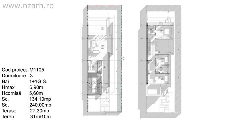 Suprafata construita : parter=134 mp / etaj=106 mp