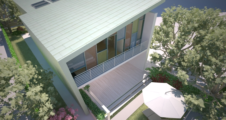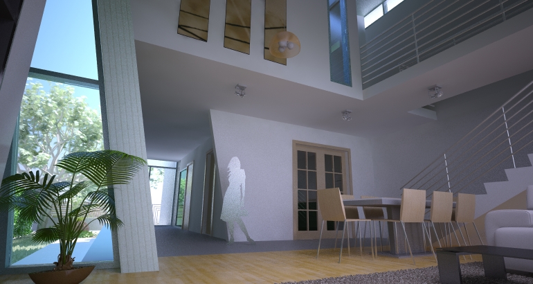 Ca functiune casa raspunde necesitatilor unei familii de 4 persoane. Spatiile interioare sunt fluid continuu scaldate in lumina zenitala prin fante orizontale si verticale, prin geamurile din acoperis si deschiderile mari vitrate ale celor doua laturi . Terasele generoase scobite parca din interiorul volumului dau senzatia de sporire a spatiului si de prelungire a casei.