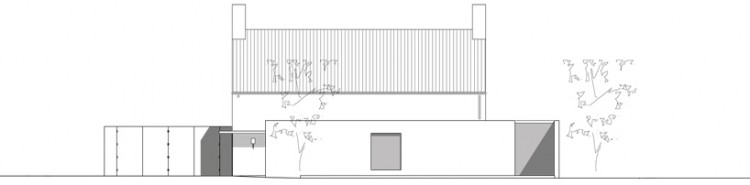 Fatada vizibila din directia drumului circulat este inchisa in totalitate cu exceptia unei singure ferestre. Chiar in spatele acestui zid, o curte interioara cu un bazin superficial de apa permite luminii naturale sa intre in casa, impingand in acelasi timp zonele de zi mai departe de strada aglomerata.