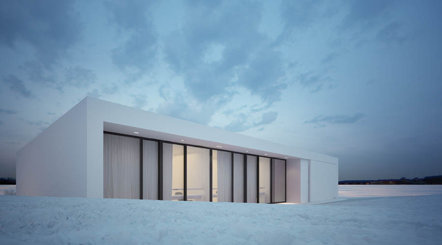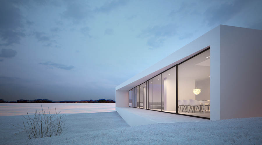 Casa raspunde la nevoile viitorilor beneficiari, atat din punct de vedere functional cat si estetic. Volumetric este minimalista, suprafete simple albe cu zone vitrate mari spre exterior. Casa respecta peisajul din jur – doua dintre laturi sunt orientate catre privelisti uimitoare, fiind complet vitrate, iar celelalte laturi sunt aproape in intregime pline avand scopul de a asigura intimitatea locuitorilor.