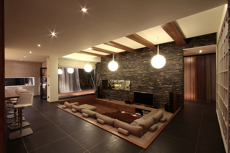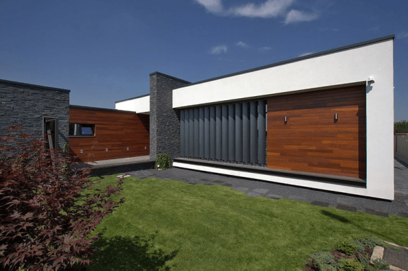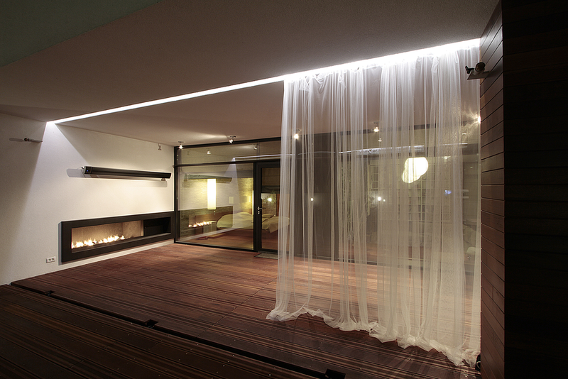 Zona de zi are parte de o legatura directa cu spatiul exterior datorita suprafetelor mari vitrate.La aceasta legatura interior-exterior participa si dormitorul matrimonial ce beneficiaza de terasa rabatabila( se poate observa in poze sistemul ).