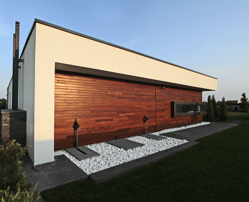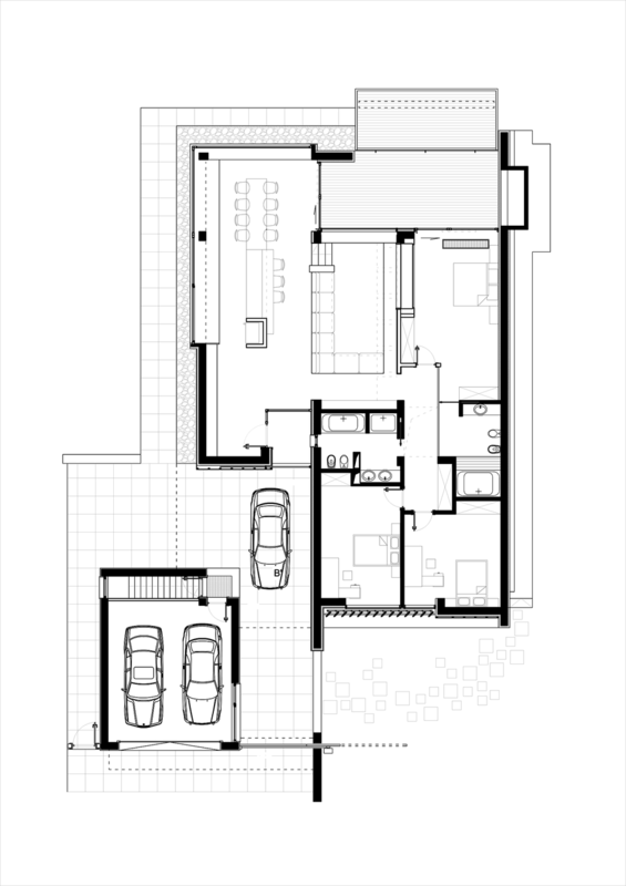 Locuinta este amplasata intr-o zona retrasa din suburbia Bucurestiului, fiind construita recent. Beneficiarii au dorit o casa care sa le ofere siguranta fara a compromite insa aspectul modern si suprafetele vitrate generoase.