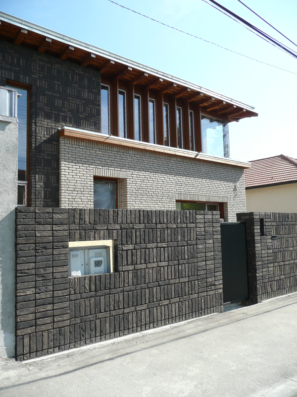 Parterul cuprinde spaţiul principal de locuit, fără compartimentări, doar zonificări alveolare. Camera de zi, locul de luat masa şi bucătăria au deschideri vitrate mari spre tarasă. Etajul este rezervat dormitoarelor şi băilor aferente. Faţadele sunt finisate cu căramidă manuală în două culori (maro închis şi crem) combinate cu placări din pin termotratat. Deasemenea, elementele structurale ale şarpantei sunt vizibile si colorate in nuanţa placării.