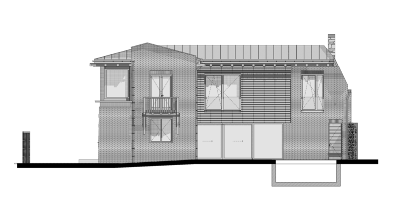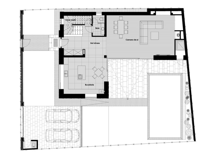Situat în cartierul Grigorescu din Cluj-Napoca, proiectul are ca temă extinderea şi etajarea unei clădiri parter, concepută pentru acomodarea unei familii cu doi copii. Structura existentă, in formă L, era poziţionată pe limita de proprietate vest având o latură perpendiculară pe stradă. Această configuraţie a fost preluată şi în cazul volumului nou parter-etaj deoarece permitea o ierarhizare între zonele de acces dinspre stradă şi curtea interioară. Soluţia adoptată prezintă ocuparea optimă a parcelei din punct de vedere al relaţiilor fată de vecinătăţi.