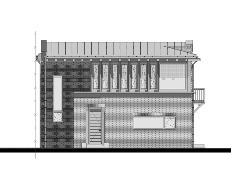 Volumul spre stradă este caracterizat prin opacitate si masivitate, dar ierahizat – se diluează prin deschidere de goluri succesive dinspre planul gardului la stradă spre parter şi registrul etajului, unde raportul plin- gol este invers proporţional. Această tratare diferenţiată derivă din dorinţa de a creea spaţii intime şi ferite de ochii trecătorilor la nivelul parterului şi deschideri de goluri mari la etaj, de unde perspectivele sunt interesante.