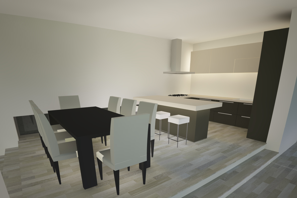 In acest caz, beneficiarul este un chef, un artist culinar, care doreste sa aibe o alta abordare la nivel de locuire. In contrast inclusiv al formei, al unui paralelipiped care este intrepatruns de forme asimetrice, tratate inclusiv din punct de vedere cromatic diferit.