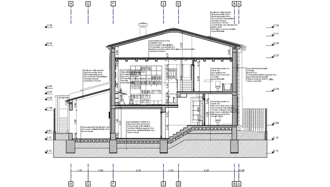 Au incercat sa explice ca o astfel de abordare la interior isi lasa o amprenta destul de puternica si la exteriorul casei si nu se potriveste cu stilul mediteranean dorit. Pana la urma arhitectii au luat-o ca pe o provocare ce trebuie rezolvata, s-a facut un compromis reciproc, iar dupa mai multe variante au imbracat un interior in stil raumplan intr-o coaja mediteraneana. A fost o provocare interesanta, proiectul a necesitat cel putin 6 sectiuni pentru a putea fi bine inteles, atat de beneficiari cat si de restul colaboratorilor.
