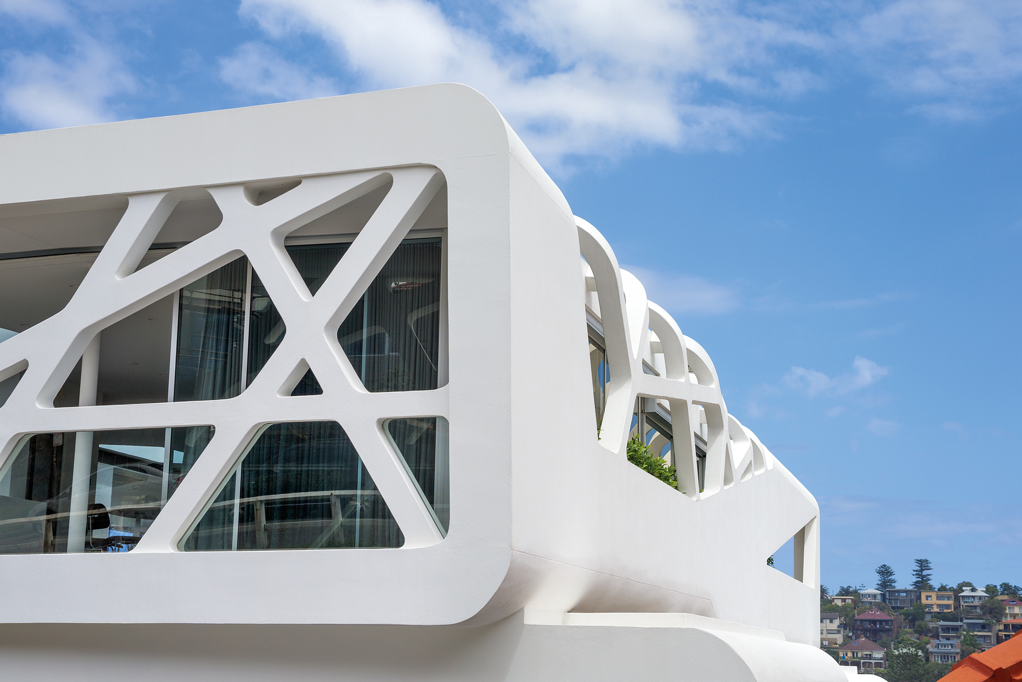 Echipa de arhitecti australieni MPRDG s-a inspirat de la crengilor copacilor pentru a crea anvelopanta casei pe care au proiectat-o pentru o familie in zona Bronte, Sydney. Volumetria casei are trei niveluri si este amplasata intr-o zona deluroasa cu vedere catre mare, fiind special creata pentru un constructor ce e specializat in realizarea din beton armat a formelor cu o geometrie complicata.