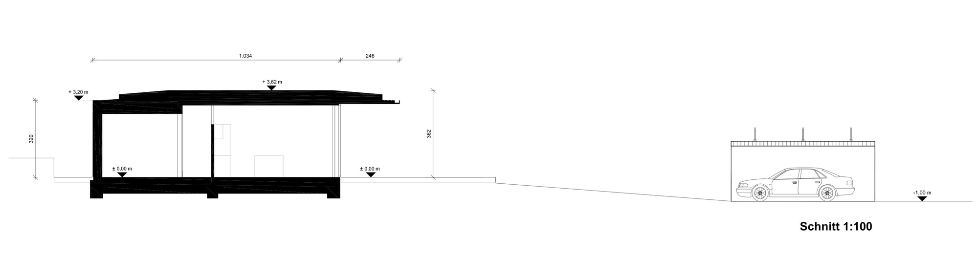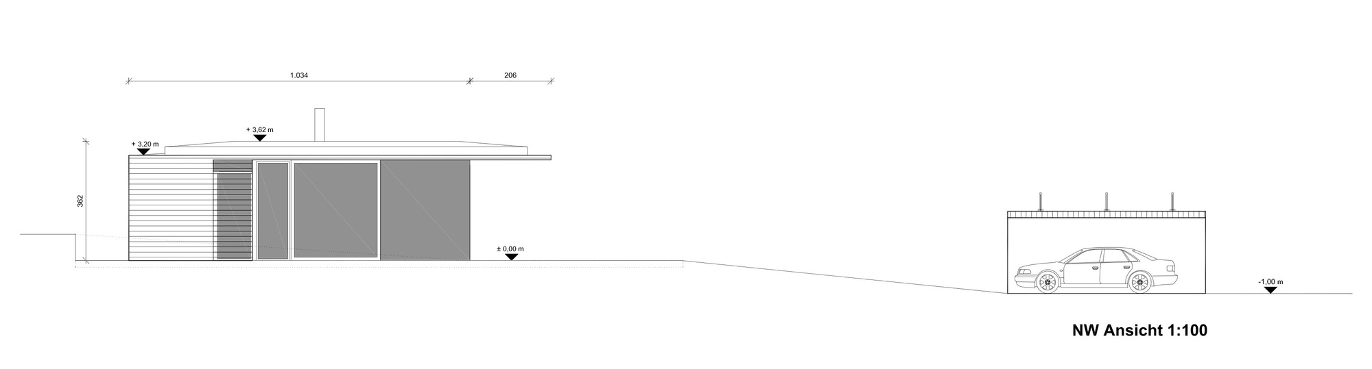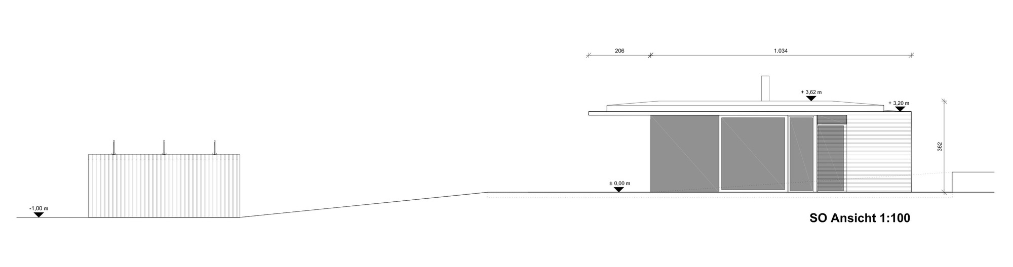 S-au facut eforturi mari pentru a se pastra cat mai mult din vegetatia existenta de pe teren. Proprietarii au vrut sa construiasca un bungalou pentru doua persoane, care a fost ridicat ca o resedinta de vara bine echipata. Utilizatorii petrec lunile de iarna intr-un apartament penthouse in oras.