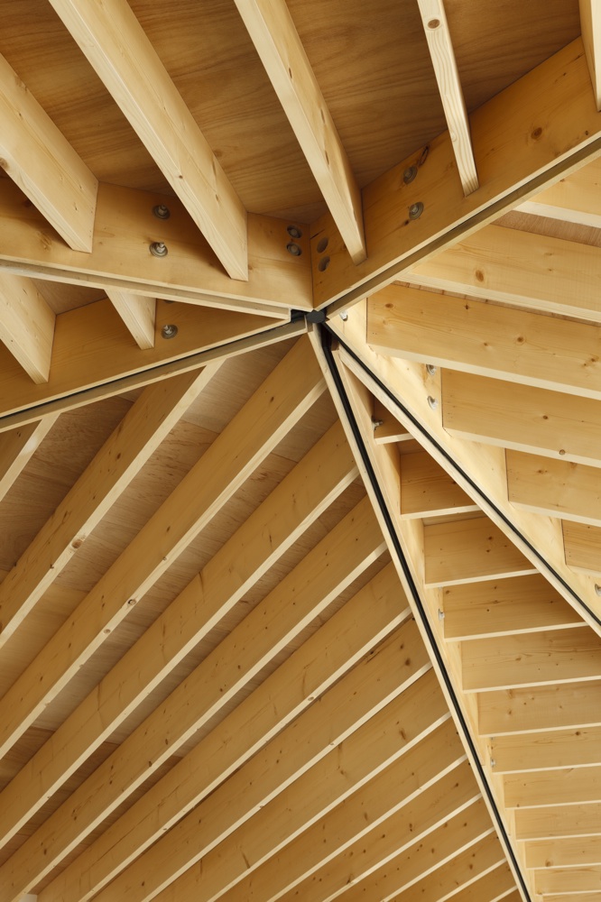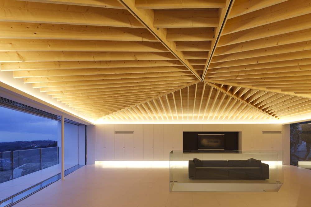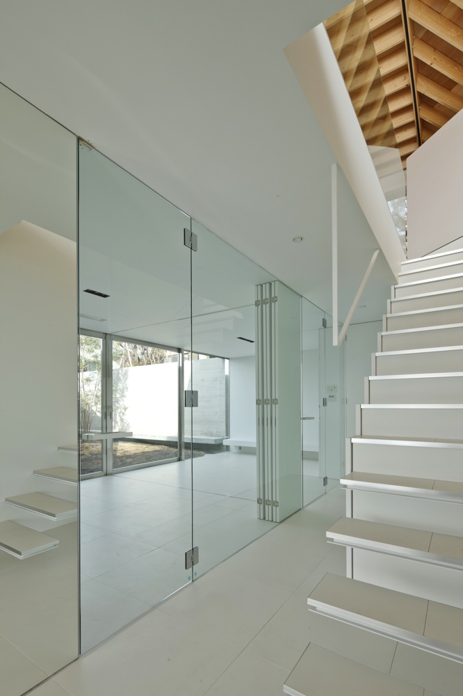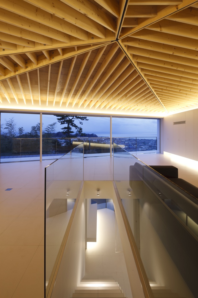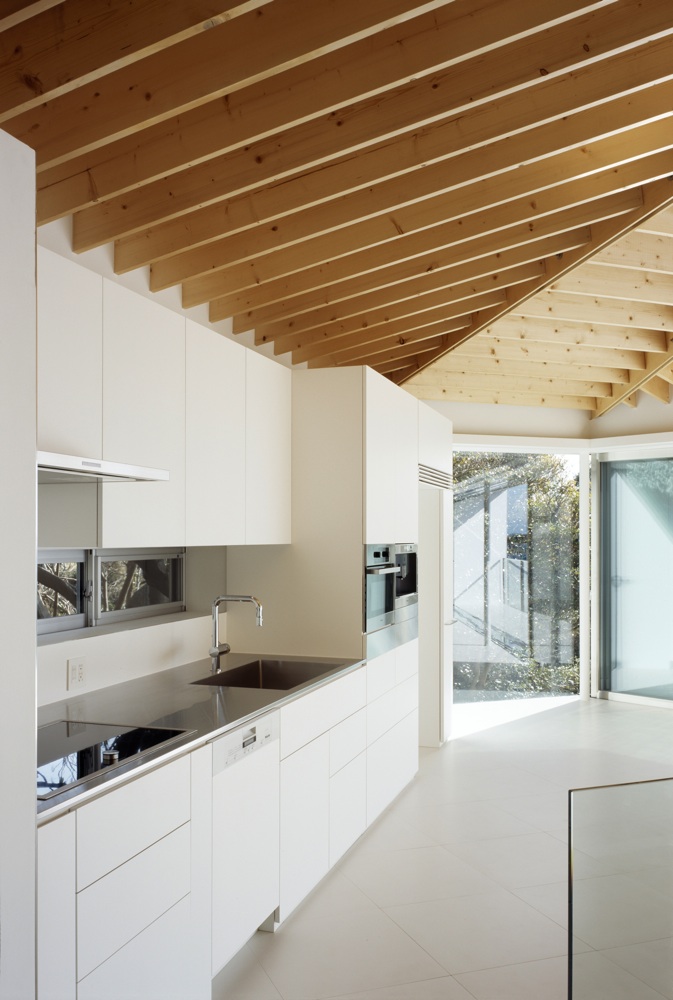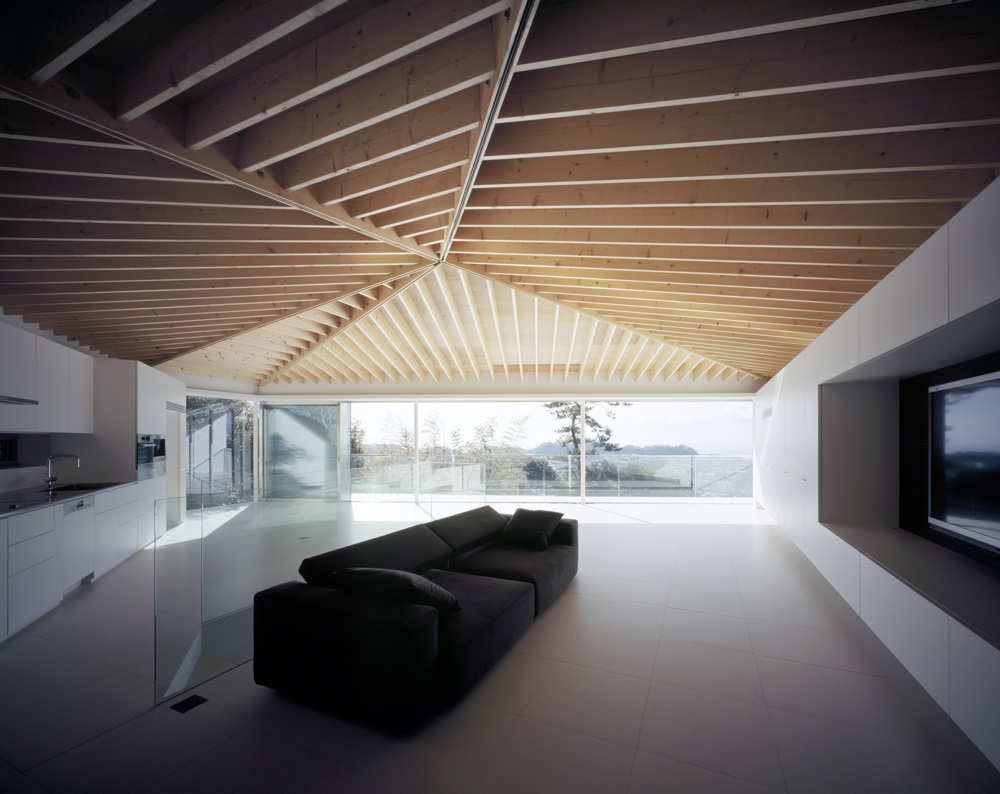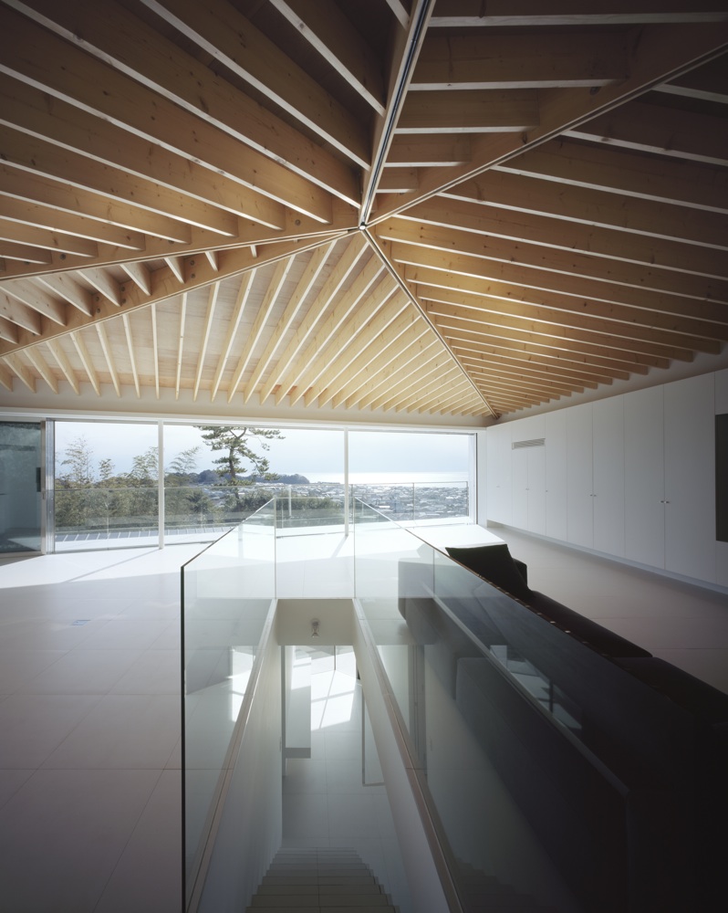 Caracteristica cea mai izbitoare a acestei case este acoperisul pentagonal alcatuit atat din otel cat si din grinzi de lemn.Desi structura acoperisului este indrazneata regasim , de asemenea, multa frumusete si in micile detalii artizanale. Deschiderea usilor glisante permite locuitorilor acestei locuinte de lux sa se conecteze cu natura din afara casei, ce infrumuseteaza si mai mult cladirea si o inradacineaza in spiritul japonez consacrat.