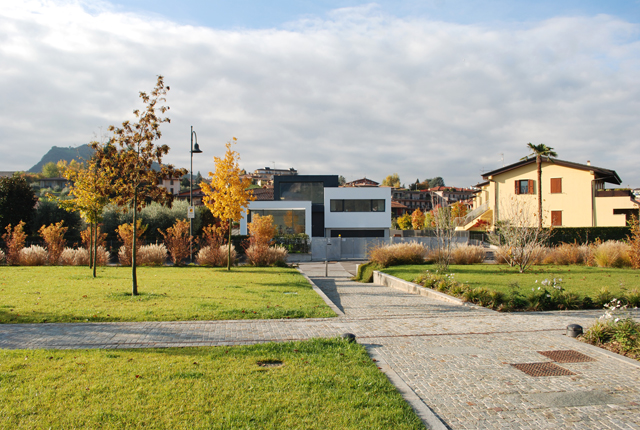 Casa prezentata este construita intr-o noua zona rezidentiala cu vedere directa spre lacul Iseo. Noua cladire se constituie ca o extindere a unei cladiri rezidentiale din anii ’70 , desi din punct de vedere tipologic, se abate foarte mult de la cea existenta.
