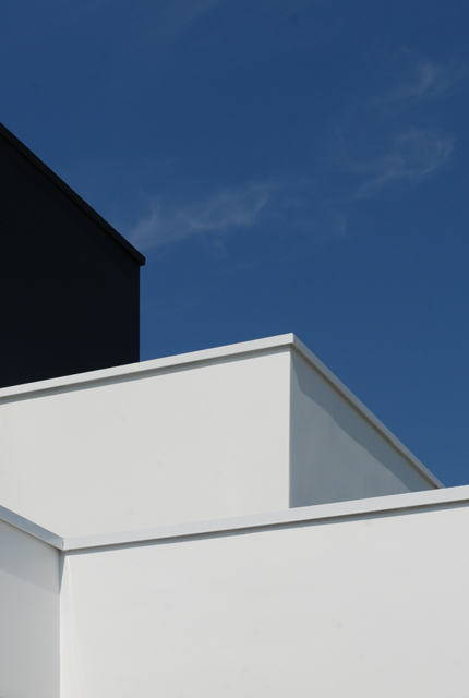 Compozitia arhitecturala a cladirii este rezultatul suprapunerii de volume simple, doua paralelipipede in culori deschise(reprezinta zona de zi si zona de noapte , volumul garajului ce ramane din beton aparent la nivelul curtii si ultimul volum detasat de restul printr-o culoare inchisa (zona de relaxare)