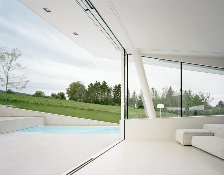 In the south-facing building part is the children´s and guest area located, in the north the cantilevering structure contains the master bedroom area with a terrace in front.The main construction is designed as a reinforced concrete construction. The floor structure rests on composite columns and is reinforced with a truss structure of steel.